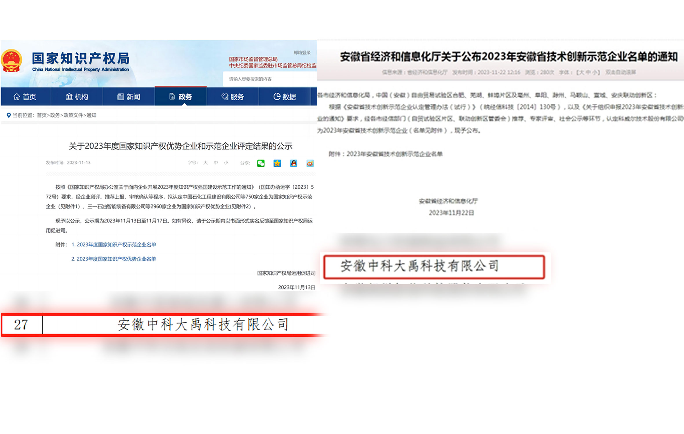 評(píng)定為2023年度國家知識(shí)產(chǎn)權(quán)優(yōu)勢企業(yè) 入選2023年安徽省技術(shù)創(chuàng)新示范企業(yè)名單